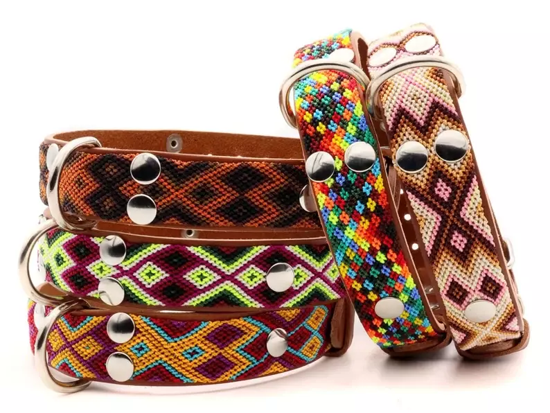 Hondenhalsbanden in boho-stijl, kleurrijke stoffen halsbanden voor huisdieren.